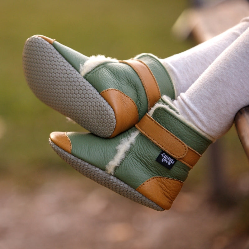 Children’s feet grow very quickly during the toddler years — they can go up 2 or even 3 sizes in just one year. Liliputi shoes cover a wider size range than regular shoes, so they can be worn for a longer time. With Liliputi shoes, it’s perfectly fine if they’re a little bit big at the time of purchase. Our soft-soled boots are available in sizes from S to XXL, which typically fit from around 6 months up to 3–4 years of age. Before purchasing, make sure to measure your child’s foot at home to ensure you choose the right size. For soft-soled boots, measure your child’s foot while wearing thick socks, and add 1–2 mm to the result to account for the warm wool lining.